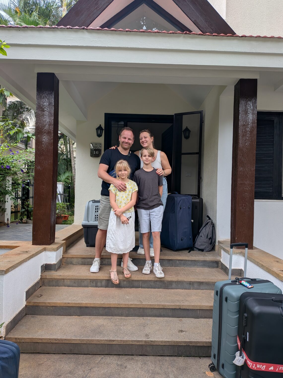 16 décembre 2025, 14 jours que nous prenons possession de notre maison pour les prochains mois, la Villa 16. Nous avons fini par recevoir les meubles de base qui manquaient à cette maison déjà meublée soit les bureaux pour les enfants, la table de salle à manger et des meubles pour profiter de l’extérieur. Le lotissement est organisé en allées, nous sommes allée 3, Villa 16, voici le plan, une vue du bout de notre allée (ne pas se fier au rond rouge sur le plan ^^) et notre maison. Ici des photos de la barrière à l’entrée, il faut montrer patte blanche pour passer, tout se passe via une appli,…