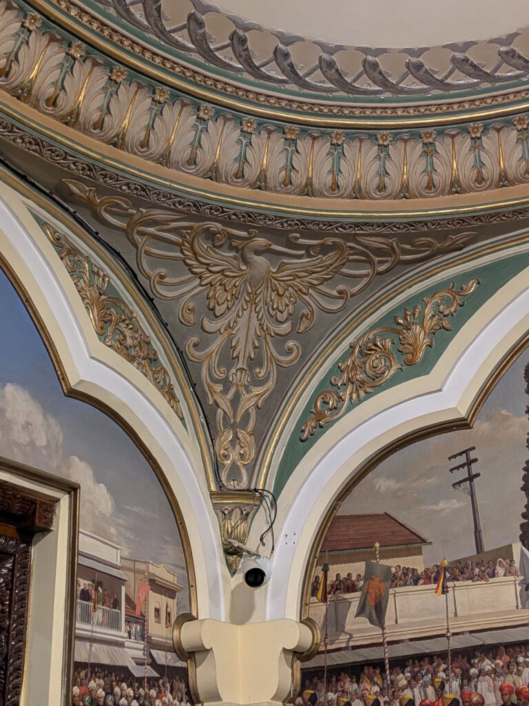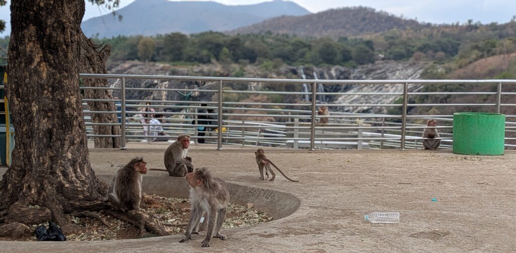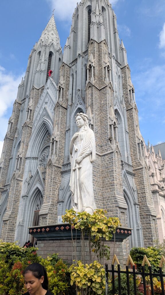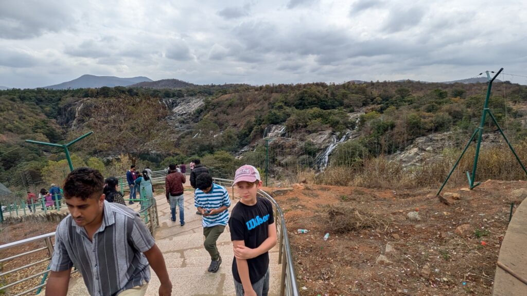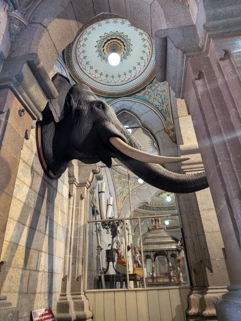 Nous sommes donc partis pour Mysore, une ville à 3h de route. Nous y avons visité le zoo, le Palais, le temple de Chamundeshwari, des Jardins et avons tenté de voir des cascades sur le retour, mais mauvaise période il n’y avait que très peu d’eau ! Mysore est connue pour sa soie et le bois de Santal, nous avons pu admirer un métier à tisser et de belles sculptures mais les prix…. nous n’avons rien rapporté! Nous avons aussi visité notre première cathédrale Indienne…pieds nus! Tout comme la visite du palais, il faut déposer ses chaussures dans un sac à l’entrée.